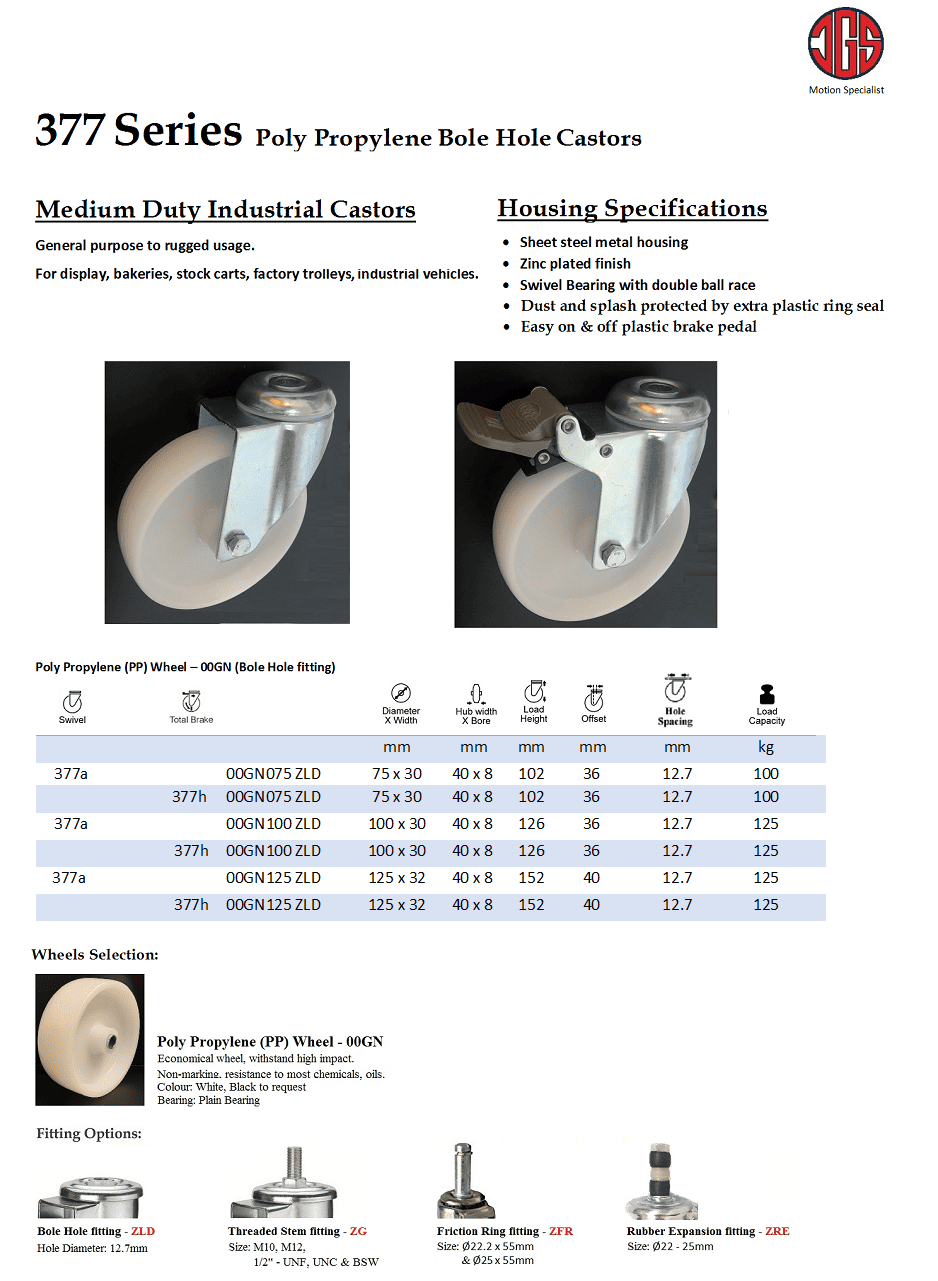 377 SERIES – POLY PROPYLENE BOLE HOLE CASTORS